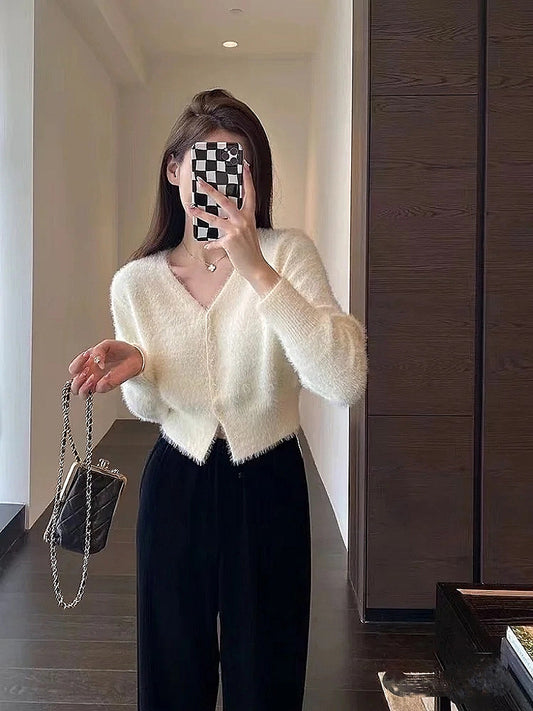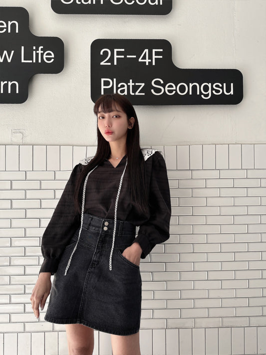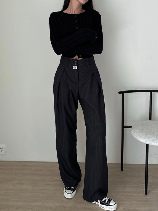 High Waist Straight Fit Wide Pants with Two-Button Label