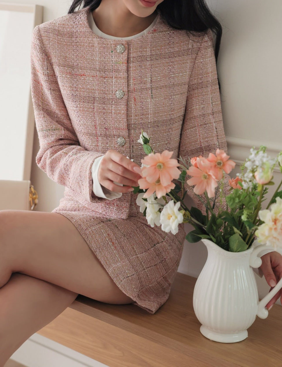 Lovely Dolce Wool Tweed Jacket & Skirt Set (Made in Korea)
